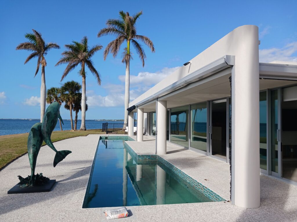 As one gazes out over the sparkling waters, one is drawn to the mesmerizing views of the downtown Sarasota skyline, the architectural beauty of the Ringling Bridge, and the vibrant sunset skies that unfold each evening. The former Baker Residence, known for its architectural significance, was designed by the award-winning architect Michael Shepherd. Reimagined in 1992, this residence features an innovative open-concept floor plan that seamlessly integrates indoor living with the stunning natural surroundings, allowing homeowners to enjoy the beauty of the bay from almost any room in the house.