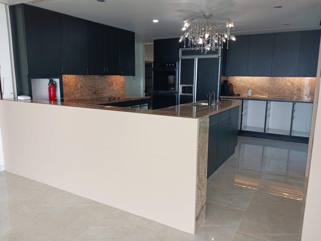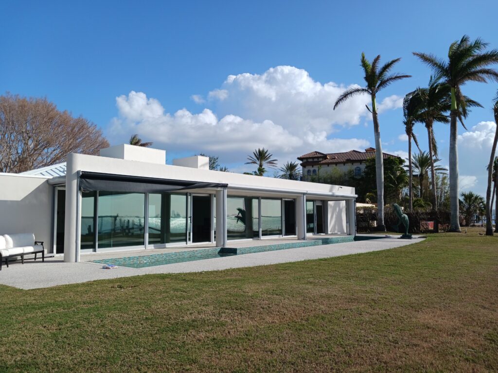 Recent updates have ensured that this home not only dazzles with its design but is also equipped with modern conveniences. With a new metal roof, impact-resistant glass windows and sliding doors, retractable Kevlar storm panels, and a fully refinished contemporary pool featuring glass tile, the estate is both stylish and resilient. The gourmet kitchen is a chef’s dream, showcasing granite countertops and mahogany paneling that pairs functionality with aesthetics. It offers unobstructed views of the bay, making it the perfect space for culinary creativity and entertaining guests.